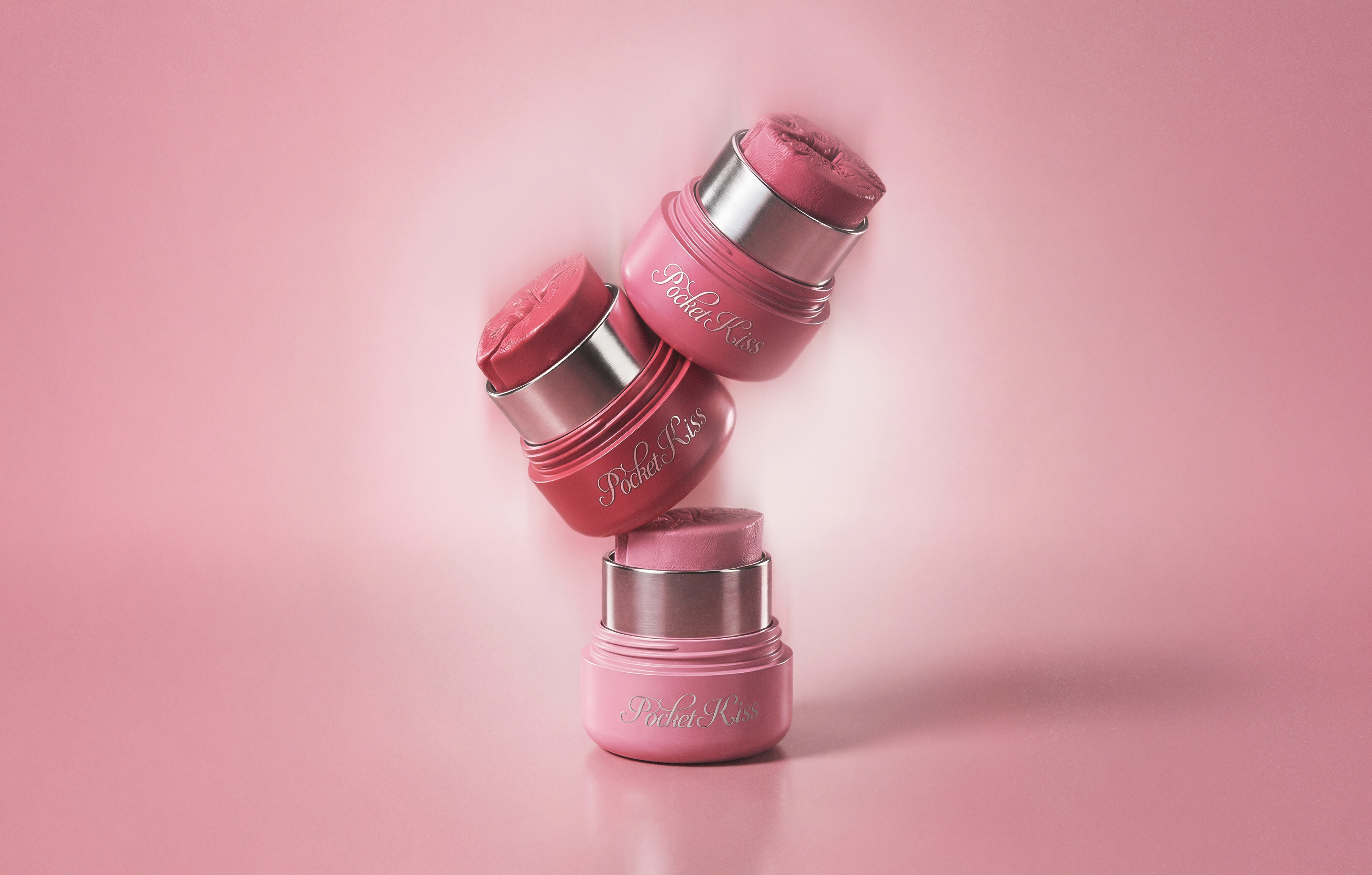 Projekt walentynkowego produktu Pocket Kiss, różu do twarzy na mokro w kształcie ust. Wystarczy jeden pocałunek, by Twoje policzki nabrały soczystego koloru. Kształt ust nadaje całości charakteru i sprawia, że aplikacja staje się elementem doświadczenia, a nie tylko techniczną czynnością. Pocket Kiss występuje w trzech romantycznych odcieniach, od subtelnego różu, przez neutralny, świeży ton, po bardziej nasycony kolor – tak, aby odpowiadał różnym typom urody.